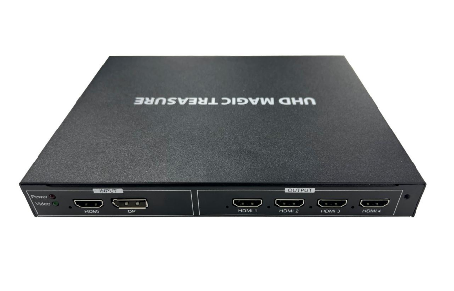 5. 最大支持1进4出,可轻松实现横向、纵向拼接及垂直拼接分割,并支持通过并联方式实现更大规模的1xN,Nx1,MxN以及旋转90°等比拼接显示,不拉伸,不变形;